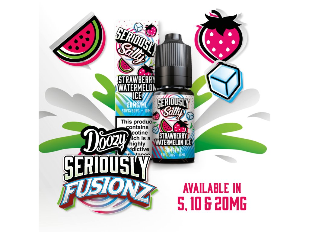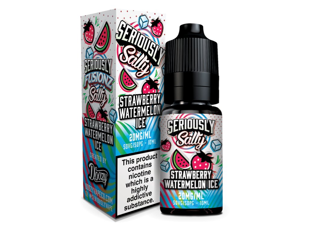 Seriously Fusionz Salty Strawberry Watermelon Ice Nic Salt E-liquid. Sladké jahody namočené vo vychladenom červenom melóne. Úžasne osviežujúca príchuť.