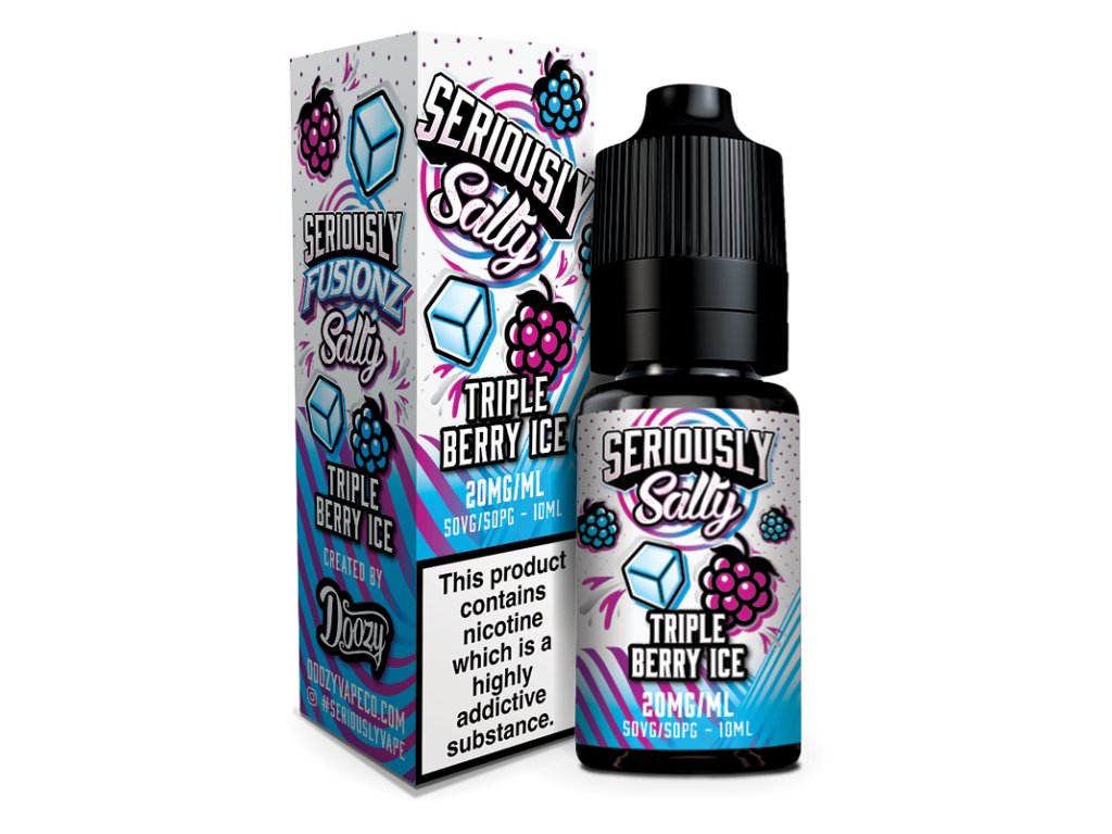 Seriously Fusionz Salty Triple Berry Ice Nic Salt E-liquid. Šťavnatá zmes zmiešaných bobúľ s ľadovým nádychom.