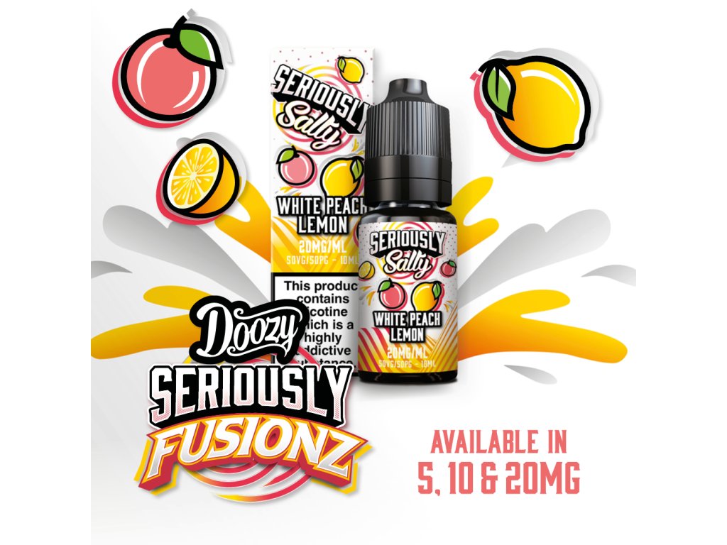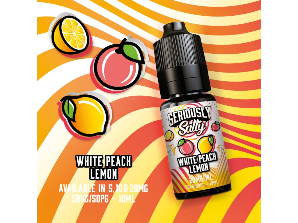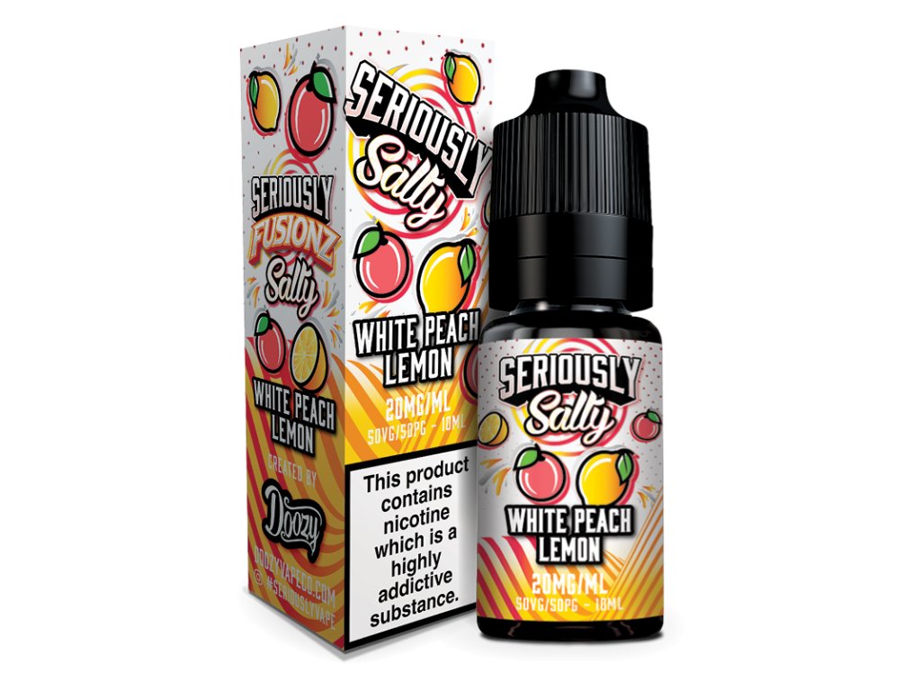 Seriously Fusionz Salty White Peach Lemon Nic Salt E-liquid. Sladký broskyňový nádych s plátkom kyslého citrónu. Tropický kokteil, ktorý bude dráždiť tvoje chuťové bunky.