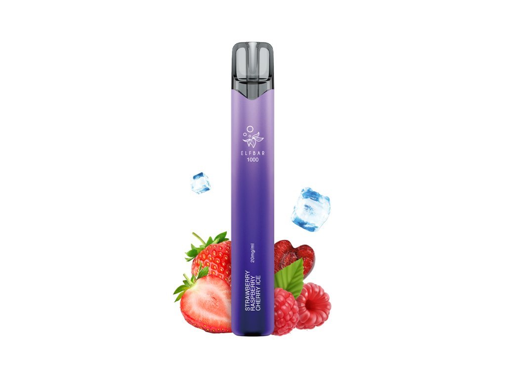 Zažite ovocnú symfóniu s ELFBAR 1000V3 Strawberry Raspberry Cherry Ice. Kombinácia jahôd, malín a čerešní s osviežujúcim chladivým záverom.